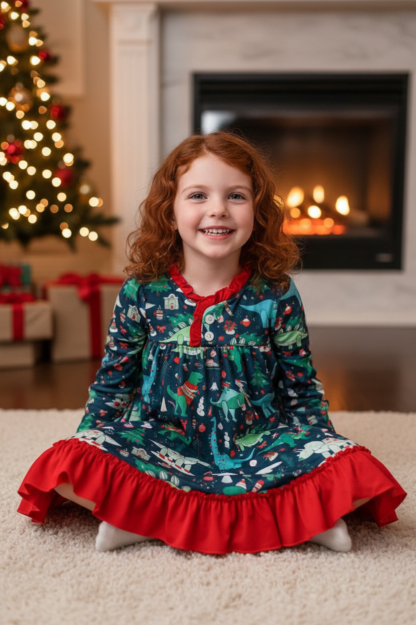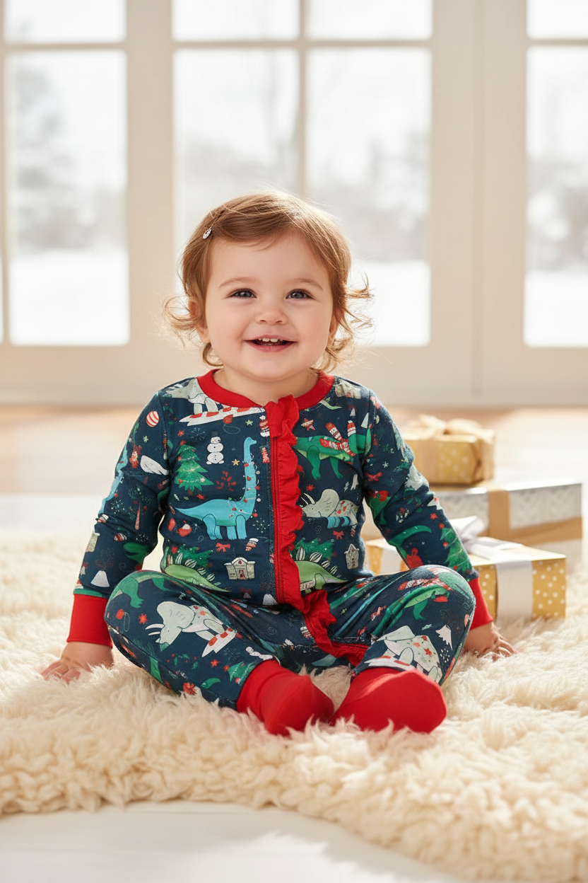 Covered in festive dinos, trimmed in red, and made for all-day fun.